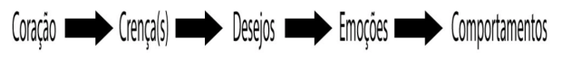 Falamos um pouco a respeito de preconceitos, usando novamente o diagrama abaixo para entender como cada ser humano opera a partir de certas crenças em seu coração, que se manifestam, de dentro para fora, por meio dos desejos, emoções e, finalmente, os comportamentos.